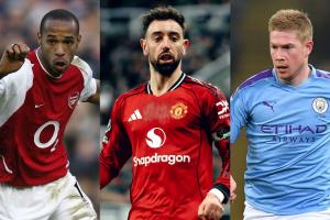 目前英超单赛季助攻纪录由亨利(02/03赛季)和德布劳内(19/20赛季)共同保持,数字是20次。