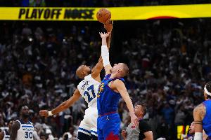 约基奇上半场犹如笼中困兽,打得很焦躁,效率低下。他出战20分钟,14投4中(三分5中1)、罚球4中4,得到13分7篮板1助攻2抢断,有4次失误,正负值-22暂为全场最低!