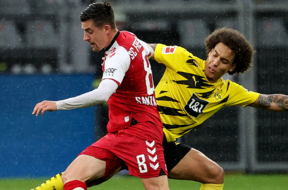 易边再战,多特蒙德攻势不减。第62分钟,贝林厄姆传球找到桑乔,后者在禁区外轰出一脚无解世界波,皮球直挂死角完成梅开二度,比分变为3-0。第78分钟,替补登场的穆科科接到边路传中,禁区内头球破门,将最终比分定格为4-0。弗赖堡全场陷入被动,进攻端毫无建树,仅有3次射门且0次射正,防线被多特彻底打穿。