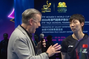 体育资讯04月05日讯 国际乒联单打世界杯女单半决赛,王曼昱4-2击败申裕斌,与孙颖莎会师决赛。赛后,王曼昱接受记者采访。