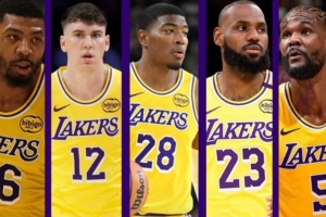 湖人媒体LakersMuse晒出了湖人季后赛的潜在首发阵容:斯玛特、拉拉维亚、八村塁、詹姆斯、艾顿。